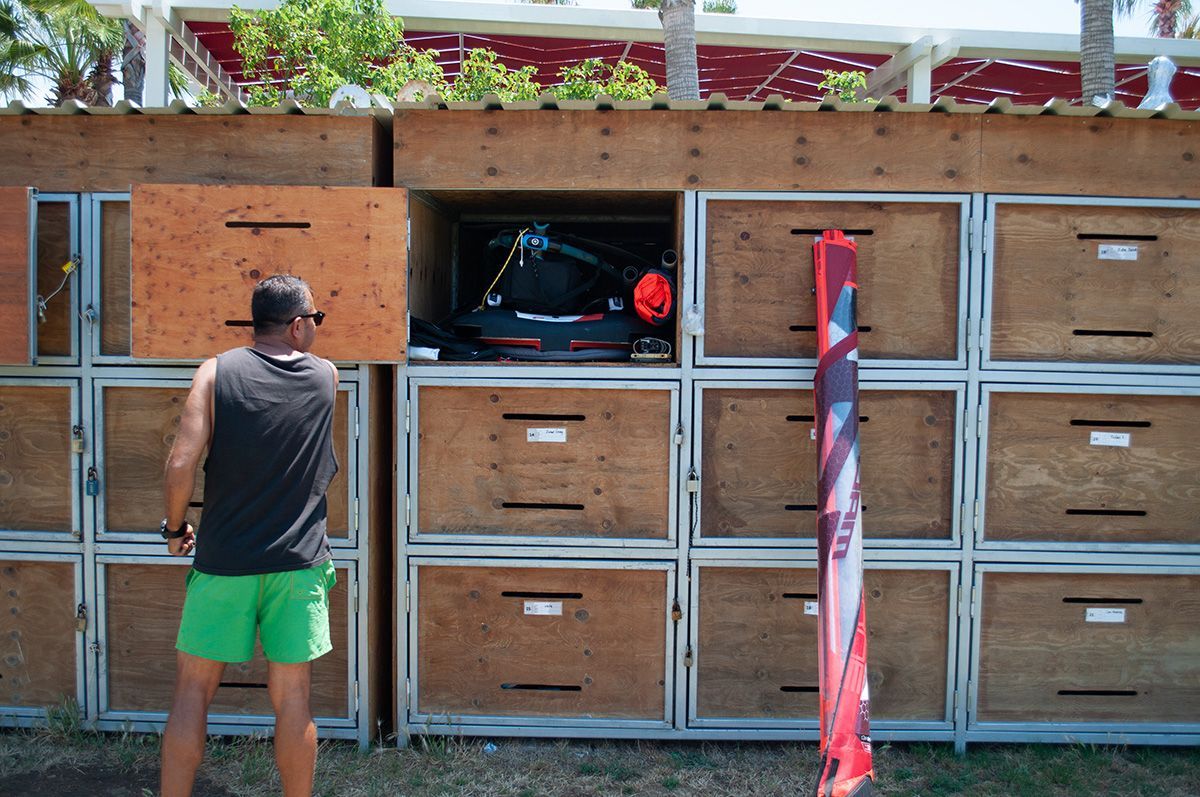 Прямо на берегу расположены закрытые боксы, где оборудование сохнет быстро и безопасно. В каждом отсеке можно хранить 2 доски и 3 паруса. Индивидуальные замки делают невозможным доступ для посторонних. Услуги команды спасателей включены в стоимость.